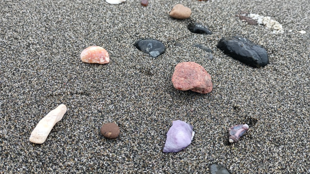 I was on the beach earlier this month, getting out my frustrations with God, hoping to get some encouragement. I started picking up pretty bits of shell and rock and glass, enjoying the colors and being soothed by the activity of searching, while conversing with my Creator.